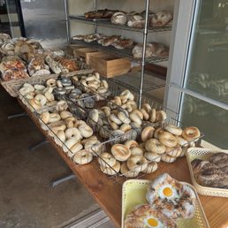 Really cute bagel spot with reasonable prices. They play great music so I sat in the sun for a bit. Drove by this little spot on my way back from fairmount run and decided to try the bacon sandwich (they only make bagel sammie's on Saturdays so I feel like it was meant to be!) Sesame bagel tasted somewhat of a Montreal bagel, and was loaded with the perfect mix of honey cream cheese, huckleberry jam, crispy homemade bacon, and arug! This is my perfect kind of spot. I'm pretty sure anything would've tasted good but the vibes were simply immaculate. I'd come backs for the pizza they serve sat nights! 10/10